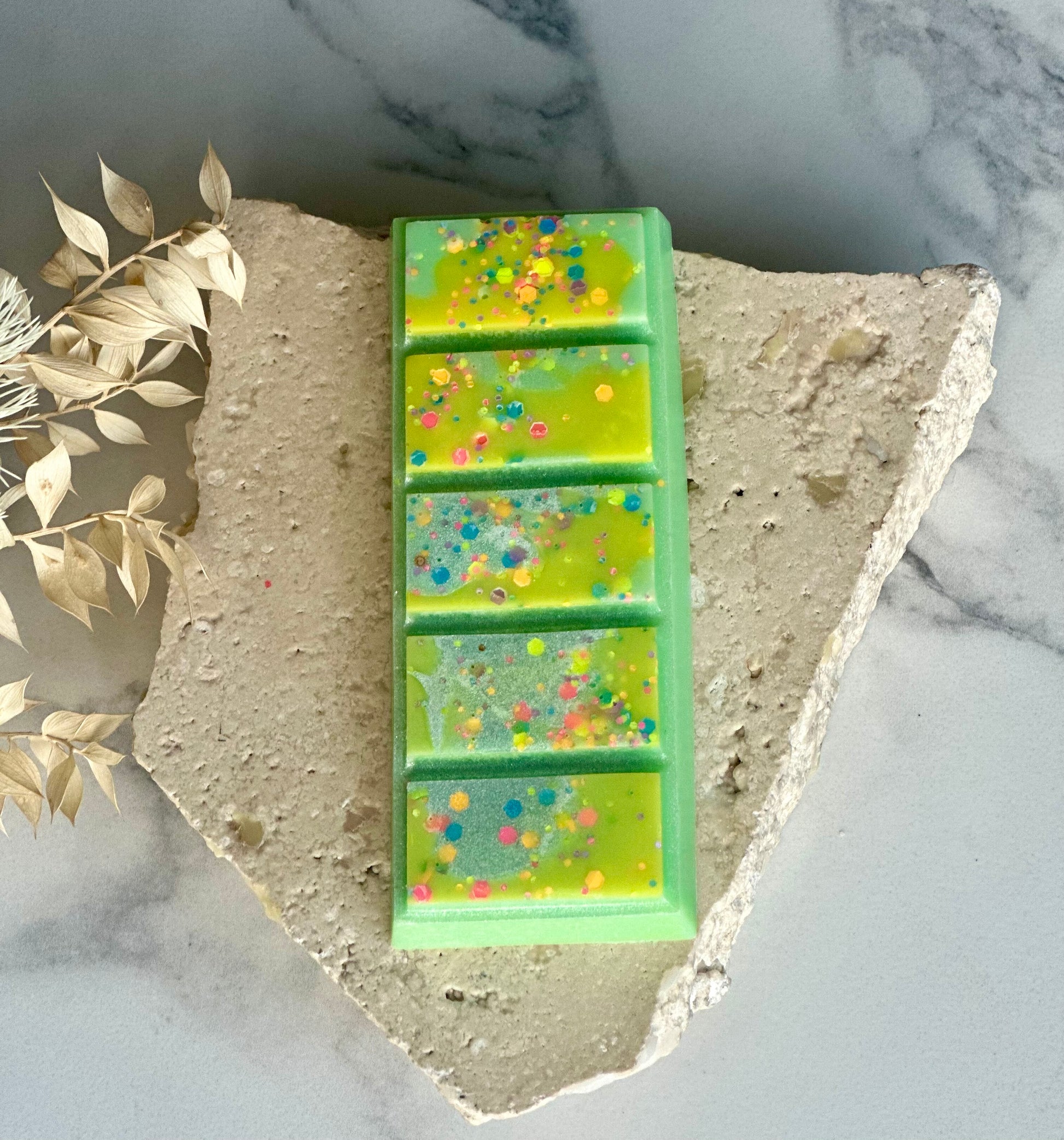 Made up of five segments. Our soy wax melt snap bar design, allows you to easily break off your desired amount wax for use in your favourite wax warmer.